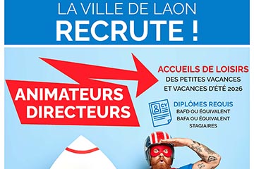 La Ville de Laon recherche des animateurs (stagiaire BAFA, diplômé BAFA ou équivalence) et des directeurs (stagiaire BAFD, diplômé BAFD ou équivalence) pour encadrer ses accueils de loisirs 2026 (vaca...