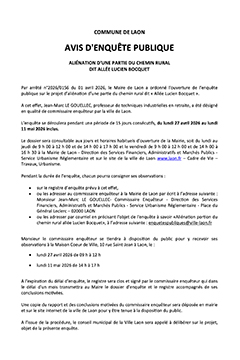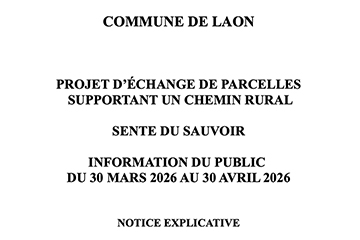 Dans le cadre d'un échange de parcelles supportant une partie de la Sente du Sauvoir, une information du public est réalisée du lundi 30 mars 2026 au lundi 30 avril 2026. Consultez le dossier d'info...